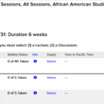 It is the student’s responsibility to confirm the course they are enrolling in is approved, available, and does not have any time conflicts. Some of the listed courses are not yet finalized (e.g. TBA “to be announced” or No Location) or may become full/closed or waitlisted.